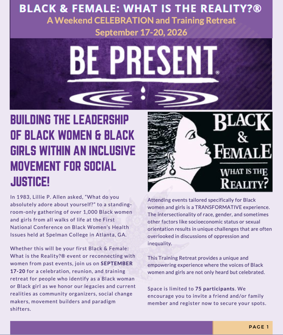 Black & Female: What is the Reality?® A Weekend Celebration and Training Retreat